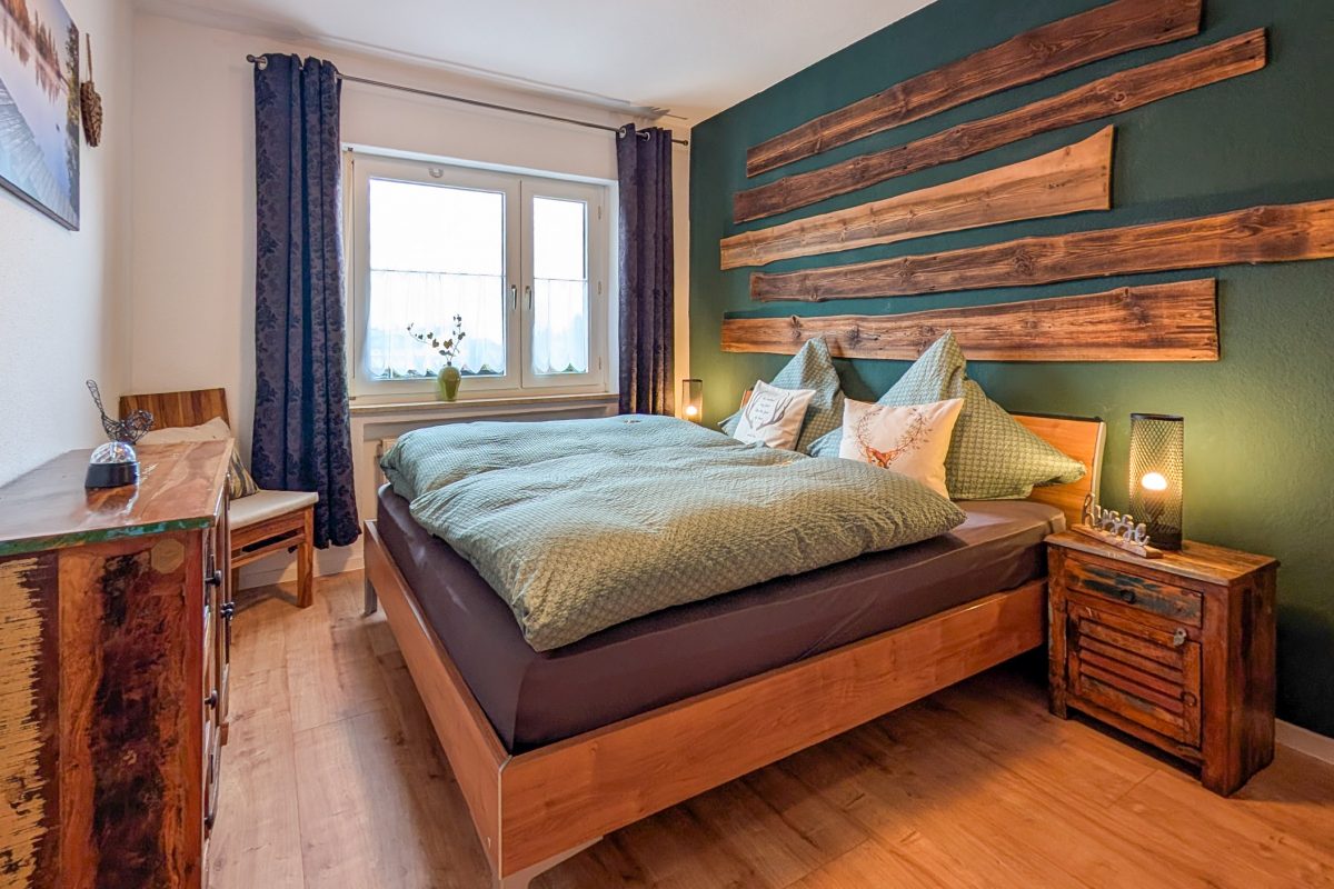 Ein gemütliches Schlafzimmer mit Doppelbett 180 x 200.