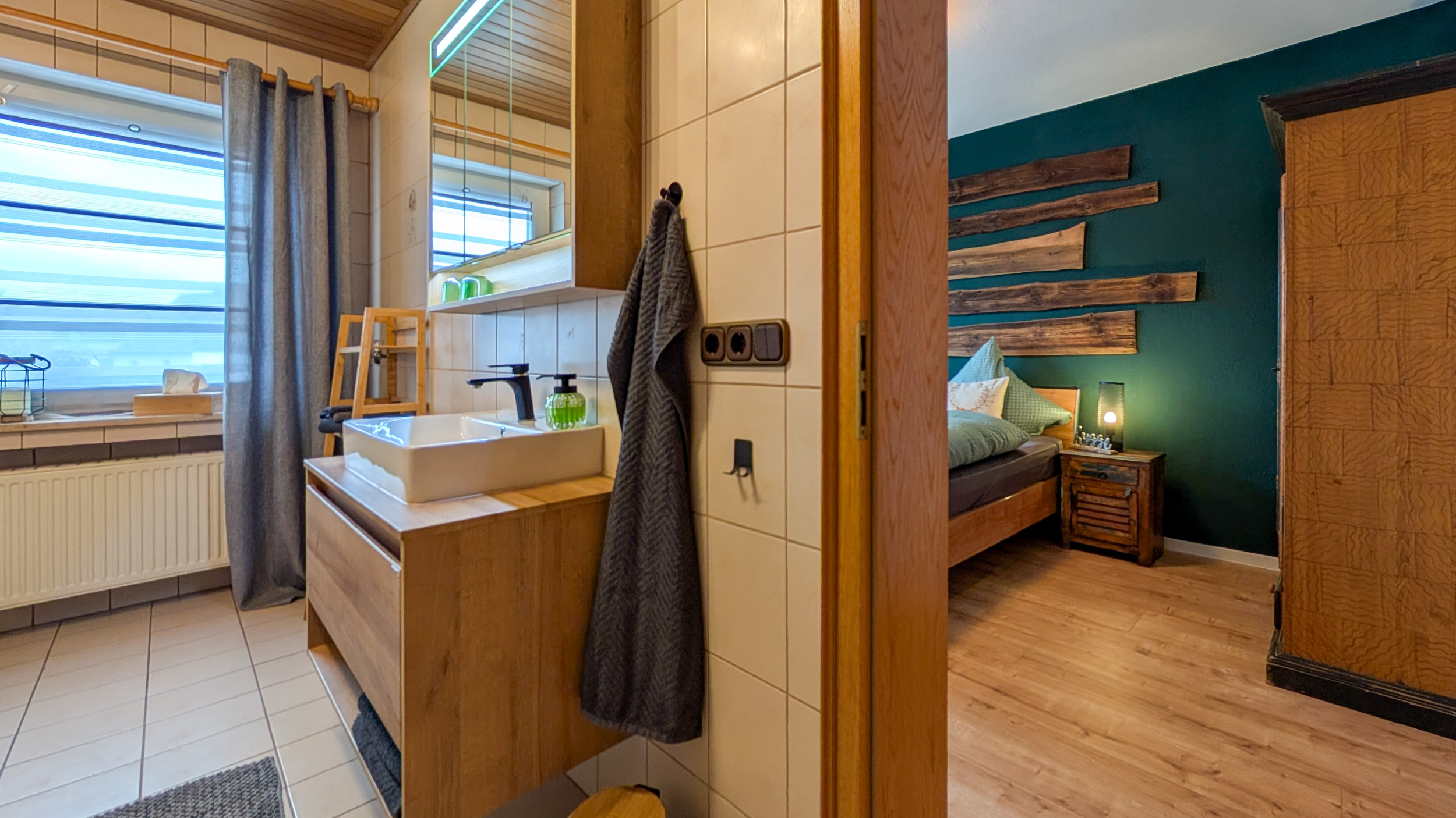 Unsere 59 m² große Ferienwohnung Fichtelsonne haben wir 2023/ 2024 neu renoviert, sie ist für 2 bis 3 Personen.